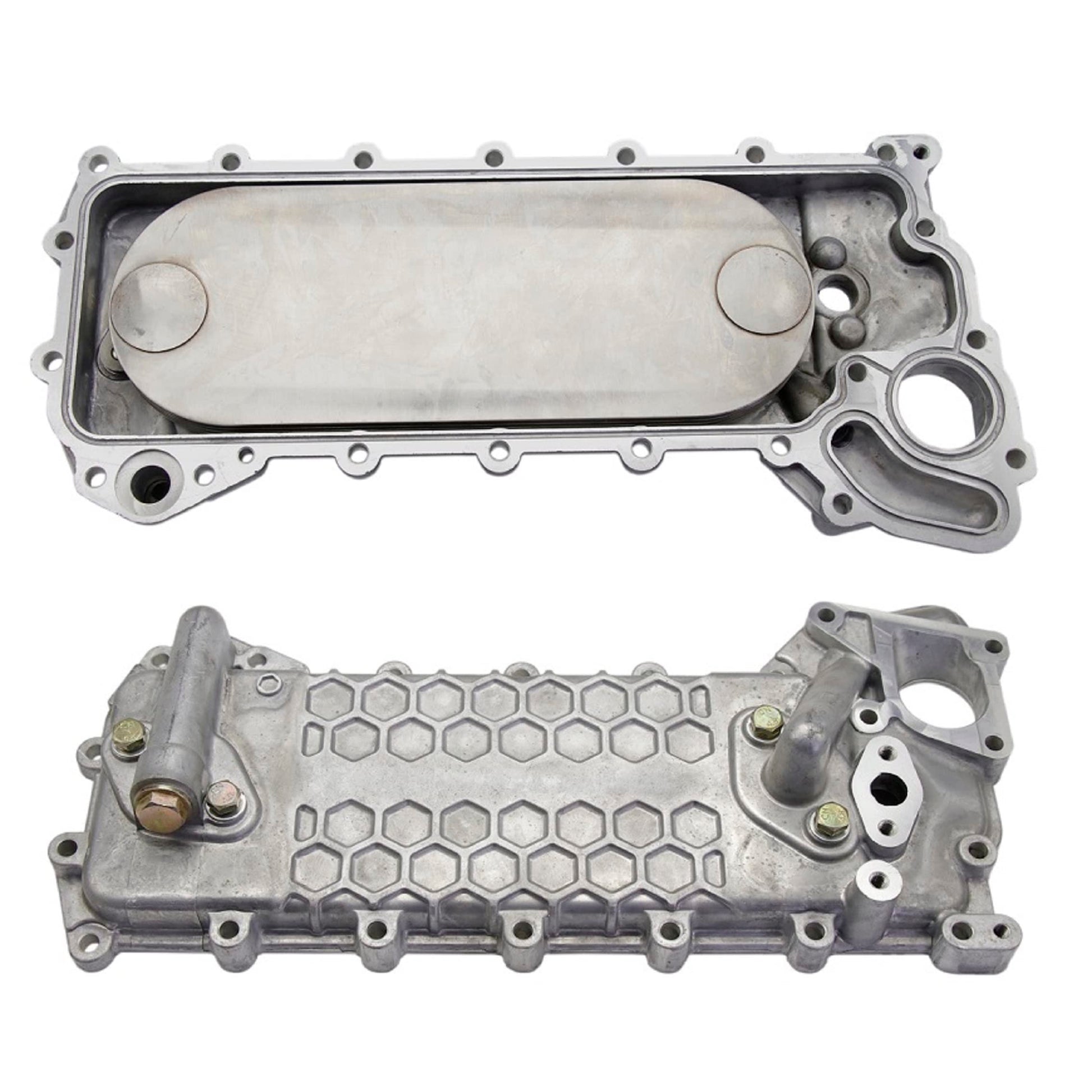 Núcleo del enfriador de aceite + cubierta 97333877 97334100 compatible con ISUZU 4HE1 NPR NPR-HD NQR Chevrolet W3500 W4500 W5500 W5500HD Tiltmaster GMC W3500 W4500 W5500 W50000 W500 W5 W5000 W5 HD hacia adelante 4. 8L 1998-2004