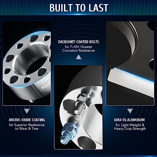 - Material de Alta Calidad: Estos espaciadores están hechos de bloques sólidos de aluminio T6 de grado aeronáutico para mantenerlos ligeros, altamente duraderos y fuertes; los 20 pernos M12 x 1.5 recubiertos de zinc están tratados con calor para una resistencia superior y resistencia al desgaste