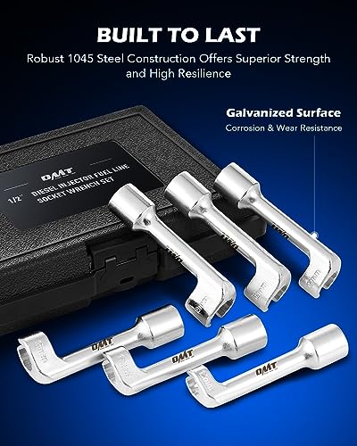 Orion Motor Tech Juego de llaves de tubo de línea de inyector diésel Dr. de 1/2", 6 piezas de 12 puntos, juego de enchufes de línea de combustible diesel con 12 llaves 14 16 17 18 0.748 in,