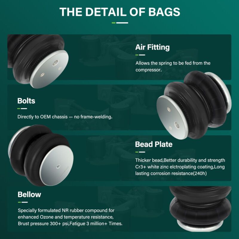 Pair Heavy Duty 2600 LBS Air Bags Suspension Spring For 3/8" 1/2" NPT Port