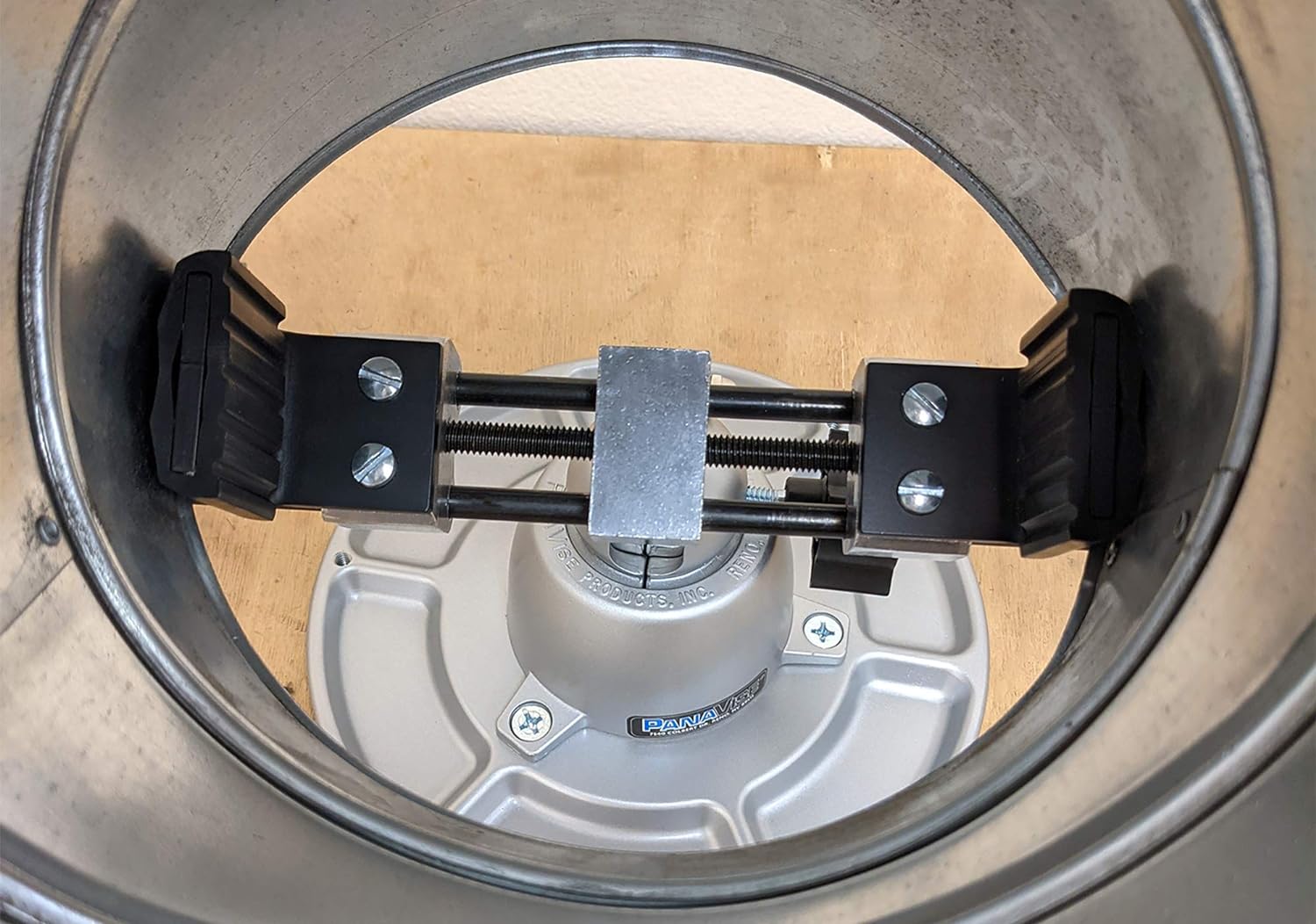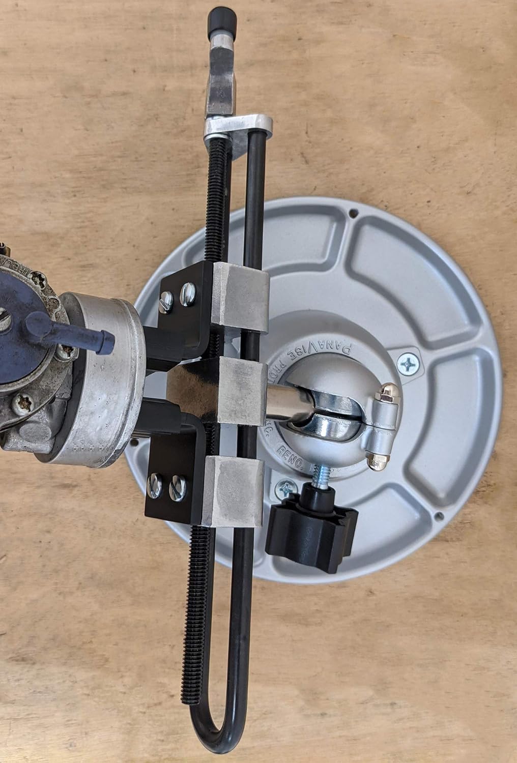 - Las mandíbulas de apertura autocentrantes y extra anchas abren un total de 9 pulgadas (9.000 in) y sostienen objetos más pesados centrando el peso sobre la base