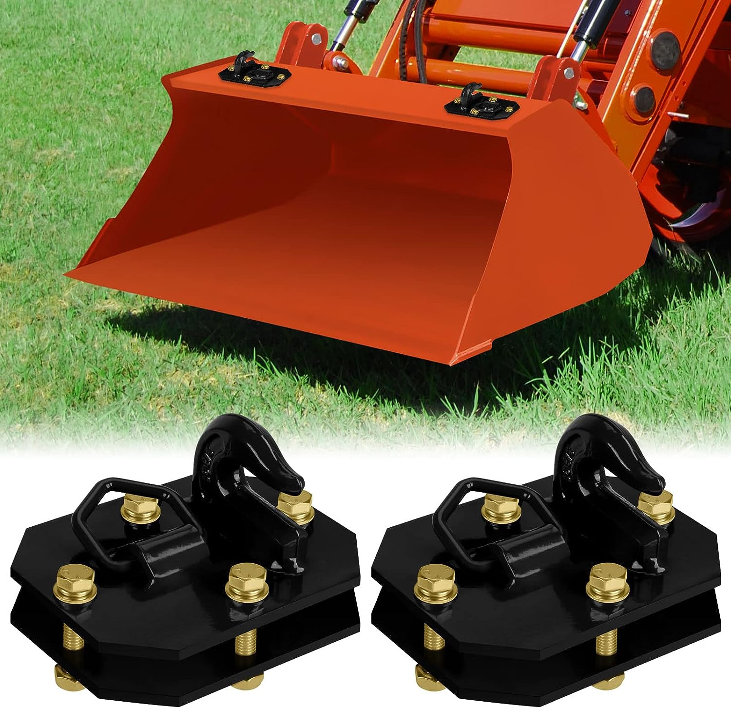 Paquete de 2 ganchos para cubo de tractor de 3/8 pulgadas con anillo en D, máximo 15,000 libras de acero forjado grado 70 para accesorios de cubo de tractor para Kubota, John Deere, Kiot, RV, UTV, camión, naranja