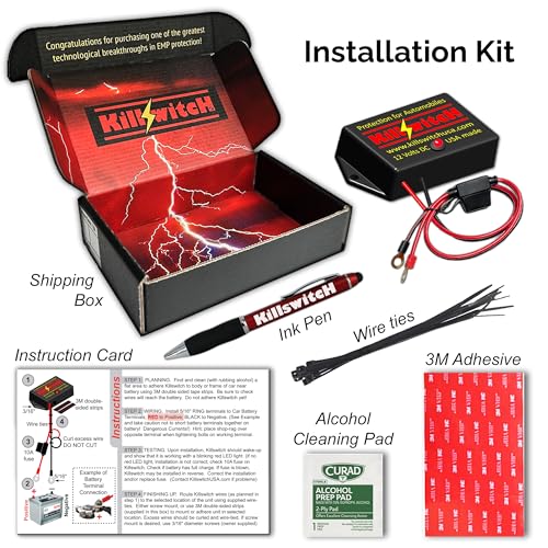 - CÓMO FUNCIONA: Killswitch funciona sujetando los voltajes del vehículo dentro del rango seguro (0-18 voltios) y soportará 225,000 amperios durante el evento de nanosegundos. Además de protección contra picos de voltaje negativo y evitar ondas de baja frecuencia (EMF).