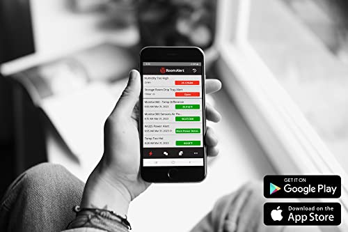 - Ofrece alertas avanzadas por correo electrónico, correo electrónico a -SMS, notificación push a través de la aplicación gratuita Room Alert App, SNMP, actualización de página web y más.