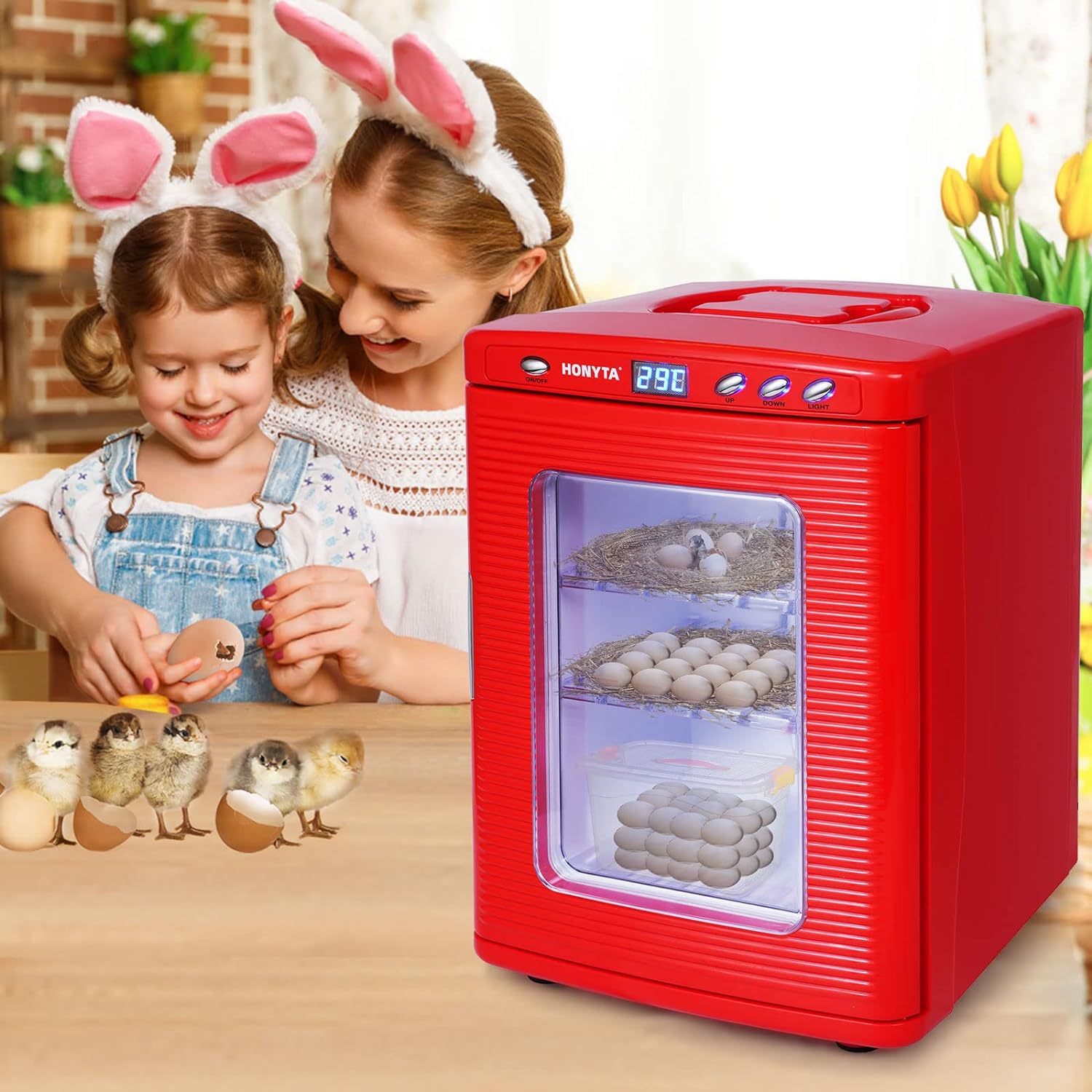 - [Portátil]: La sección superior de la incubadora tiene un mango, por lo que es muy fácil moverse de un lugar a otro.