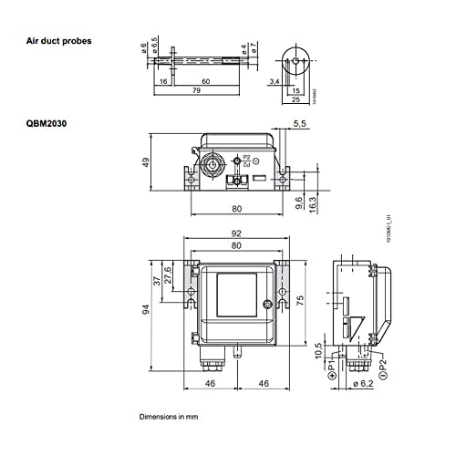 Sensor de presión diferencial (Rango de presión: 0 a 1500 Pa) para conductos industriales, de ventilación y aire acondicionado, laboratorios, producción, salas limpias y flujo laminar por Siemens Modelo: QBM2030-30