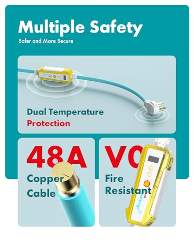 - 4. Modos de carga versátiles: Ajuste la corriente y programe fácilmente para una carga rentable. Cargador de nivel 1 y 2, 12A-16A (110V) y 12A-40A (240V). Modo automático para carga rápida, modo manual para la duración de la batería. Establezca un temporizador para ahorros fuera de pico.