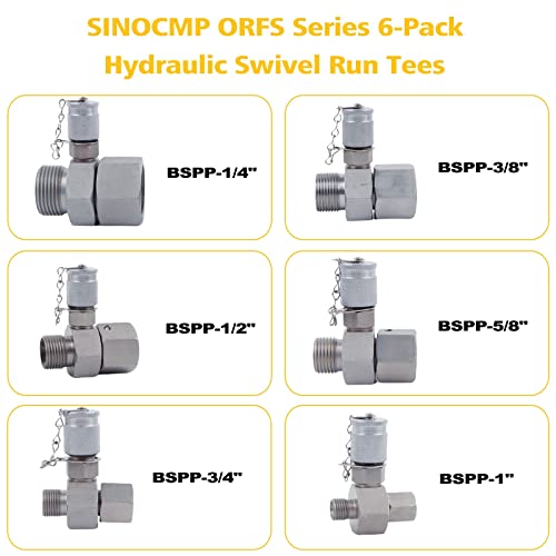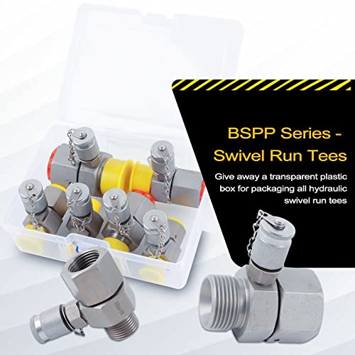 SINOCMP BSPP Paquete de 6 camisetas hidráulicas giratorias con conector en T hidráulico BSPP Tester Tee Coupling Set para Excavadora Maquinaria de Construcción Sistema Hidráulico