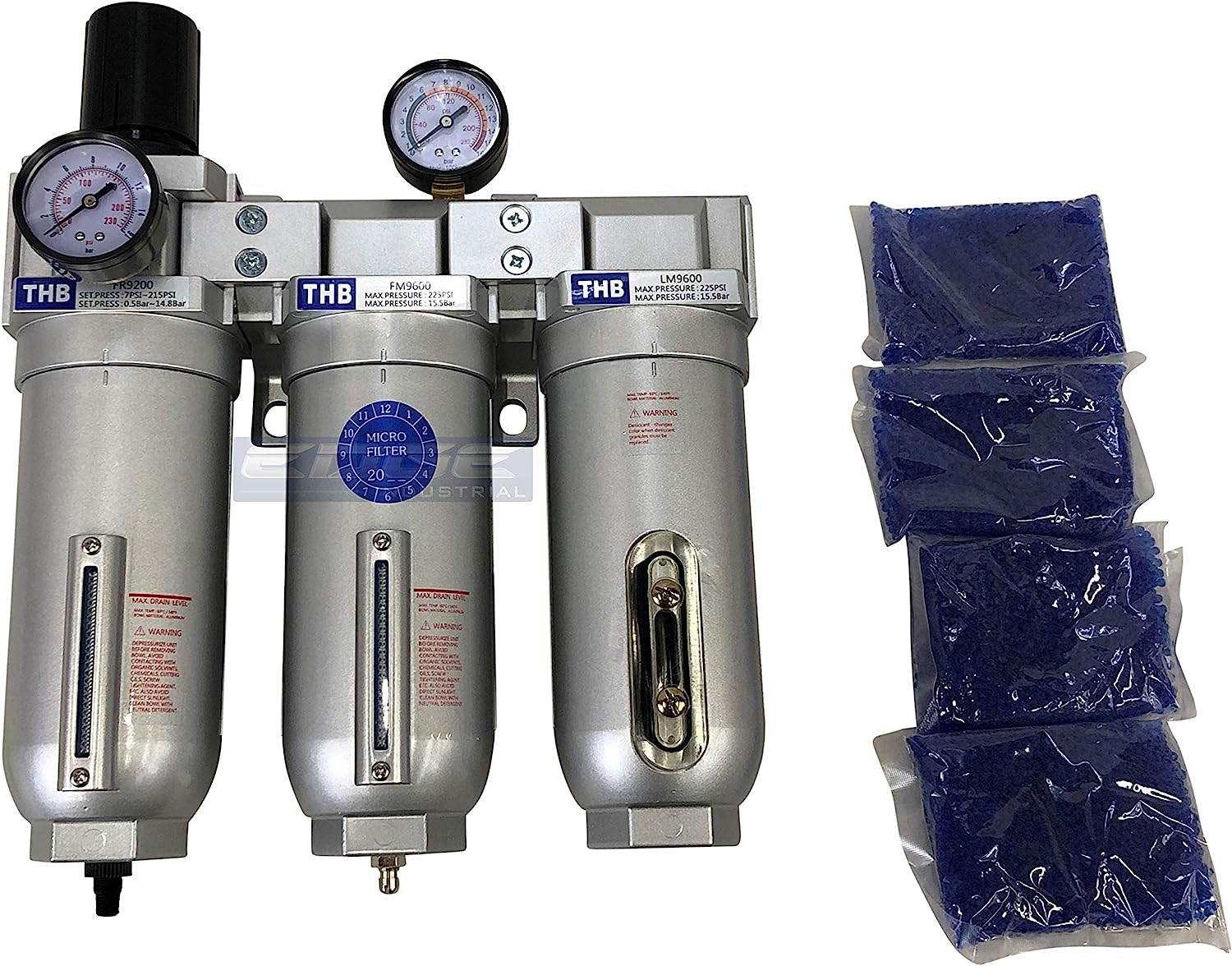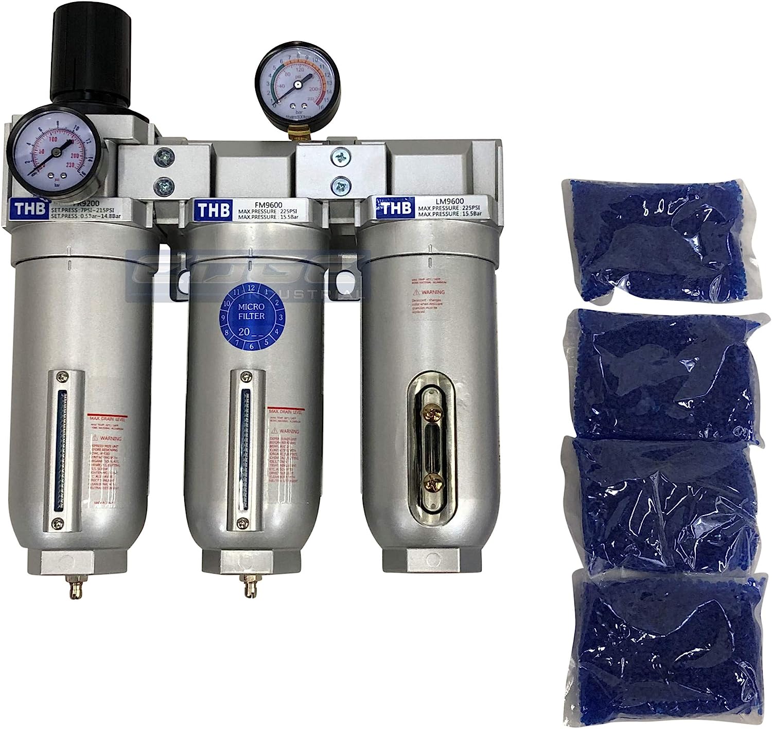 - Presión máxima de entrada de 175 PSI, equipado con cuencos de metal de 325 ml, gafas de visión visibles, medidor de presión, soporte de montaje en pared y 4 bolsas de cuentas deseciantes.