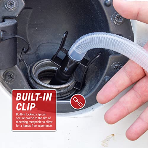 - Comodidad de parada automática: integrado en la boquilla hay un sensor que detendrá la bomba automáticamente. Bombea combustible con las manos libres con la manguera de 39 pulgadas (3.25 pies) de largo a automóviles, pilas de combustible, camiones, barcos, cuatrimotos, motocicletas y mucho más.