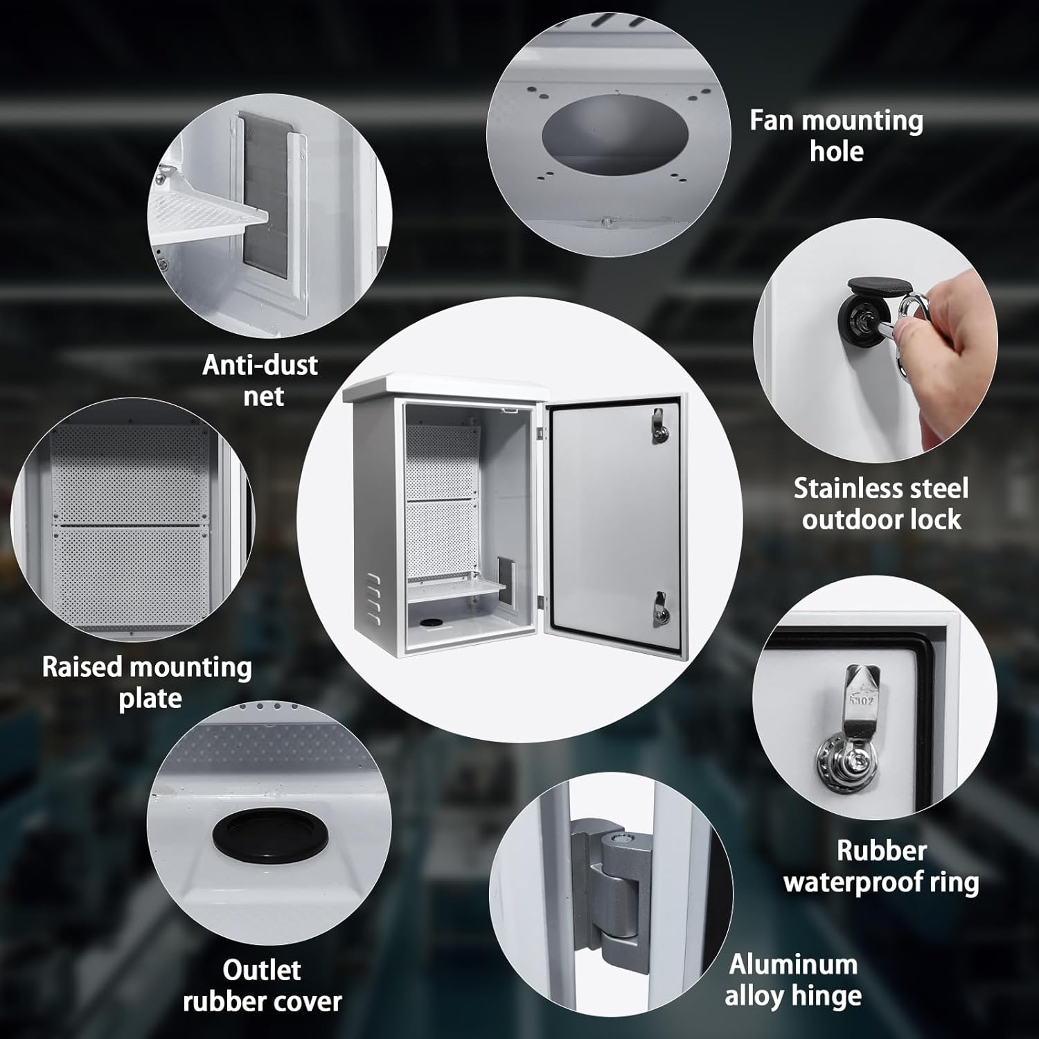 - Amplia gama de aplicaciones: la caja ventilada para exteriores es adecuada para interiores y exteriores, eléctrica, industrial, ingeniería, monitoreo de seguridad, almacén, electrónica, etc. . (si necesita los kits de pared o postes montados, compre más en nuestra tienda).