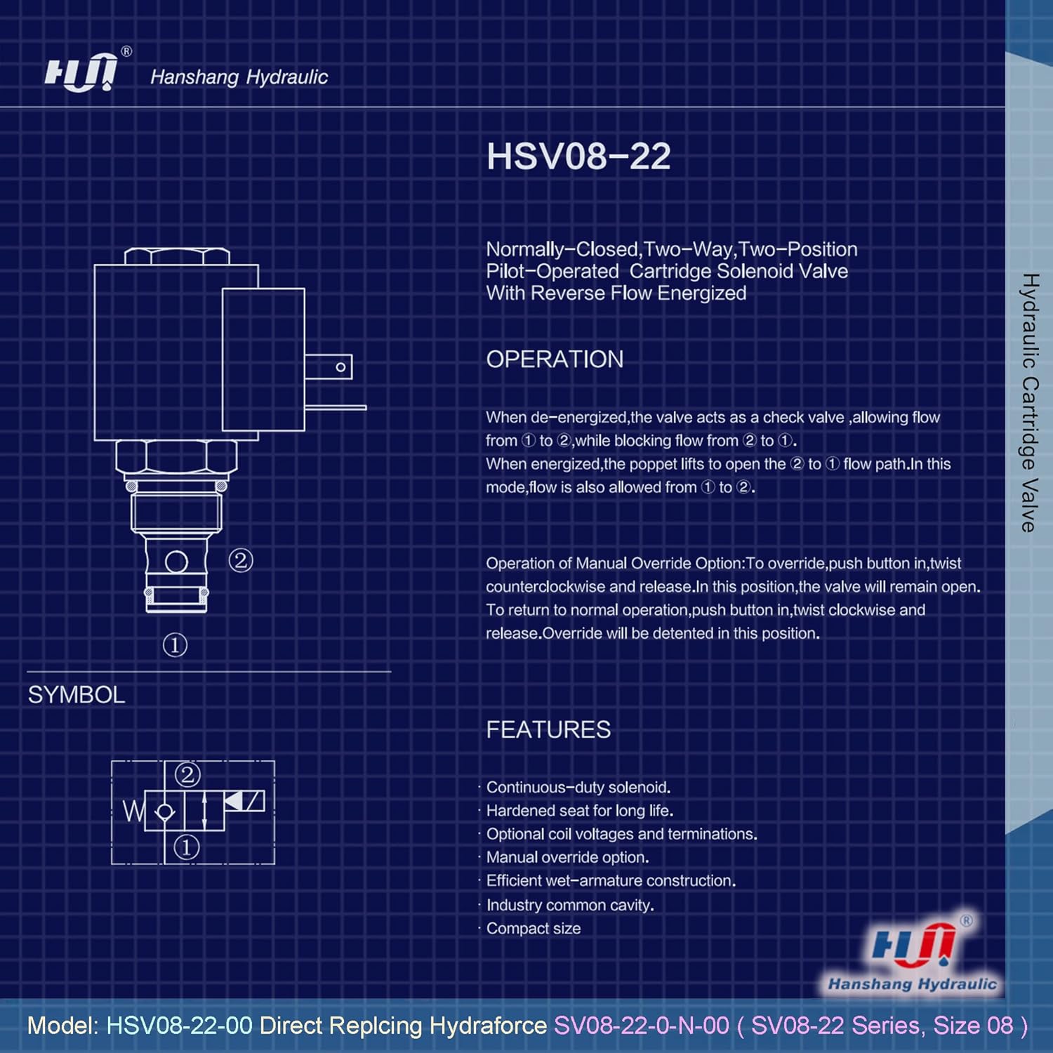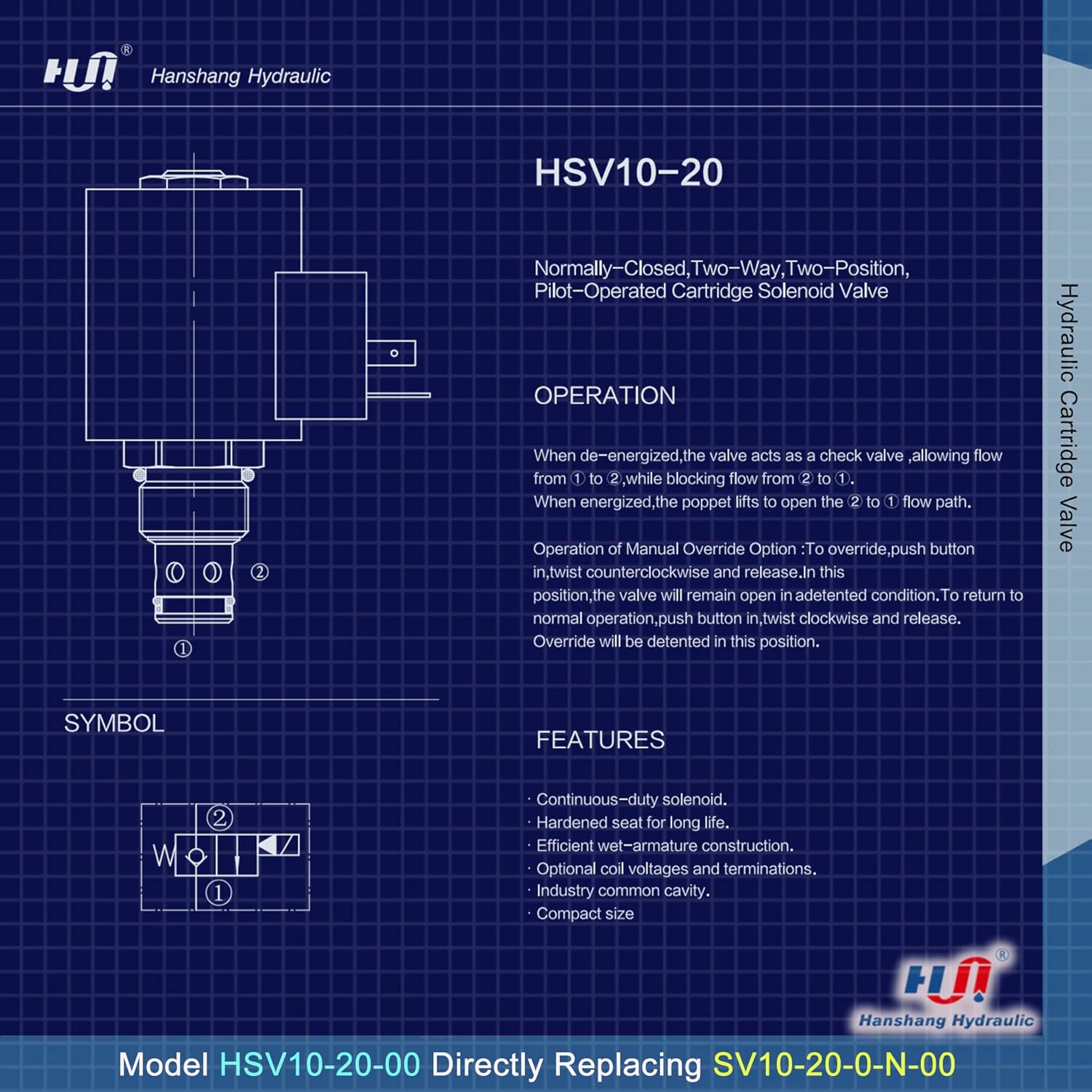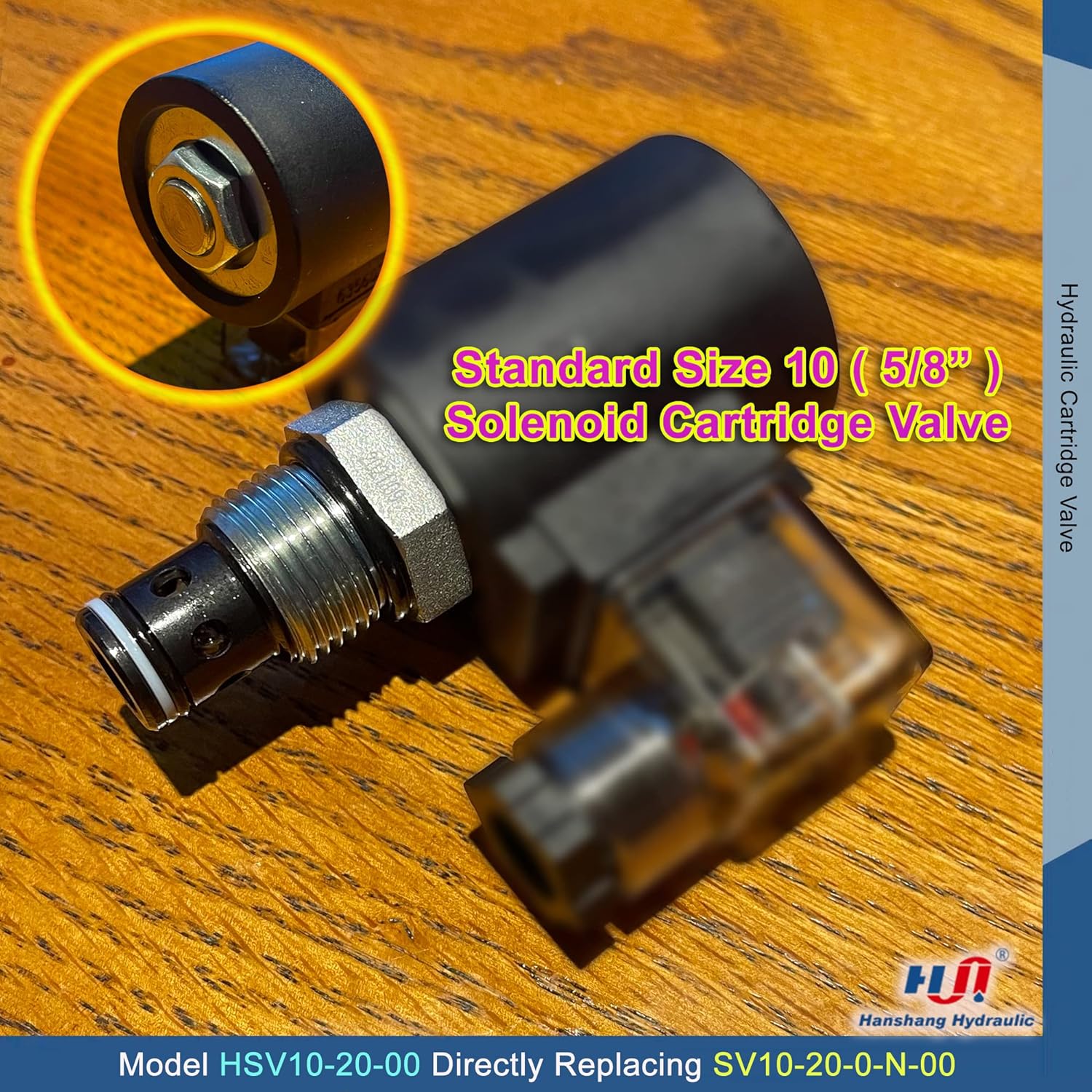 Válvula de cartucho de solenoide, válvula electromagnética hidráulica de dos posiciones normalmente cerrada Reemplazo comparable a Hydraforce SV10-20-0-N-00 (HSV10-20-00)