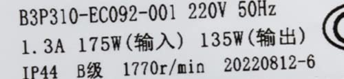 - Voltaje: 220 V, Corriente: 1.3 A, Potencia: 175 W