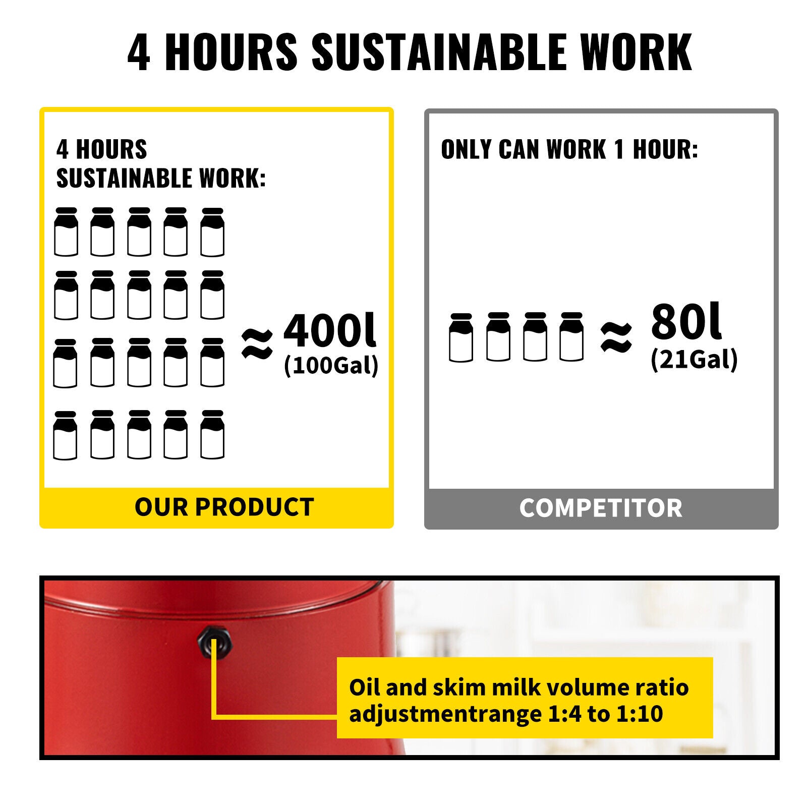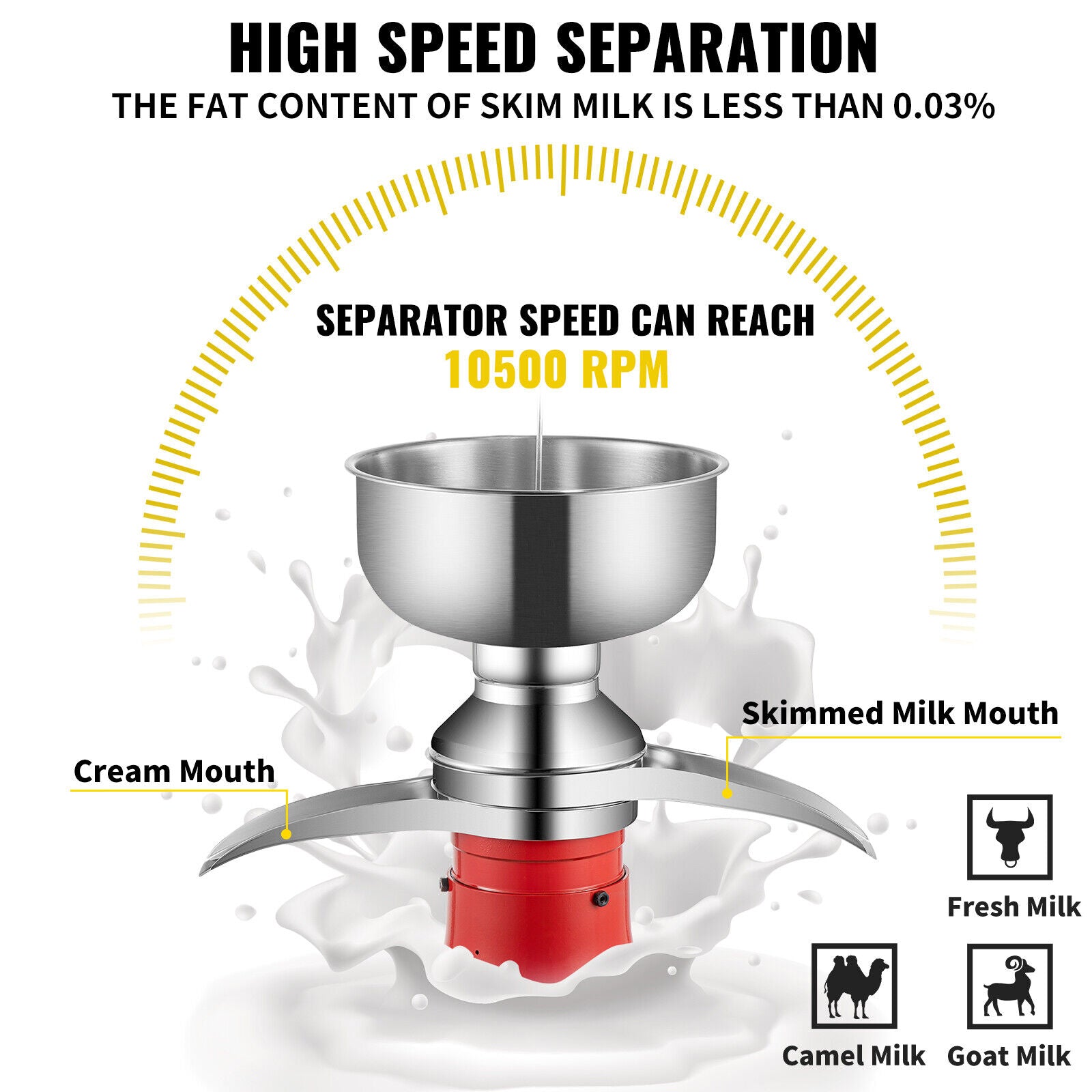 VEVOR 110-240V Electric Fresh Milk Cream Separator Centrifuge Separator 100L/H