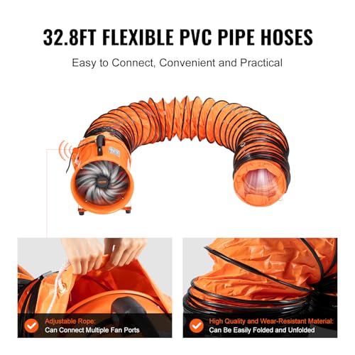 VEVOR Ventilador portátil con manguera, 2 velocidades, ventilador de escape de 10 pulgadas con conducto flexible de 33 pies, motor de aire industrial de alta velocidad de 350 W 1948CFM para extracción