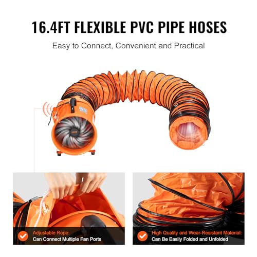 VEVOR Ventilador portátil con manguera, 2 velocidades, ventilador de escape de 12 pulgadas con conducto flexible de 16.4 pies, motor de aire industrial de alta velocidad de 560 W 2894 CFM para