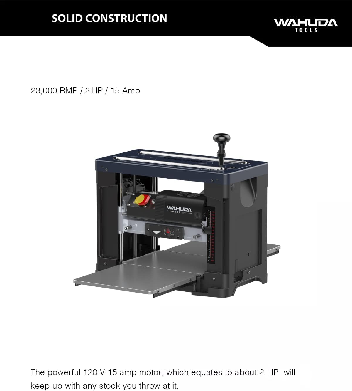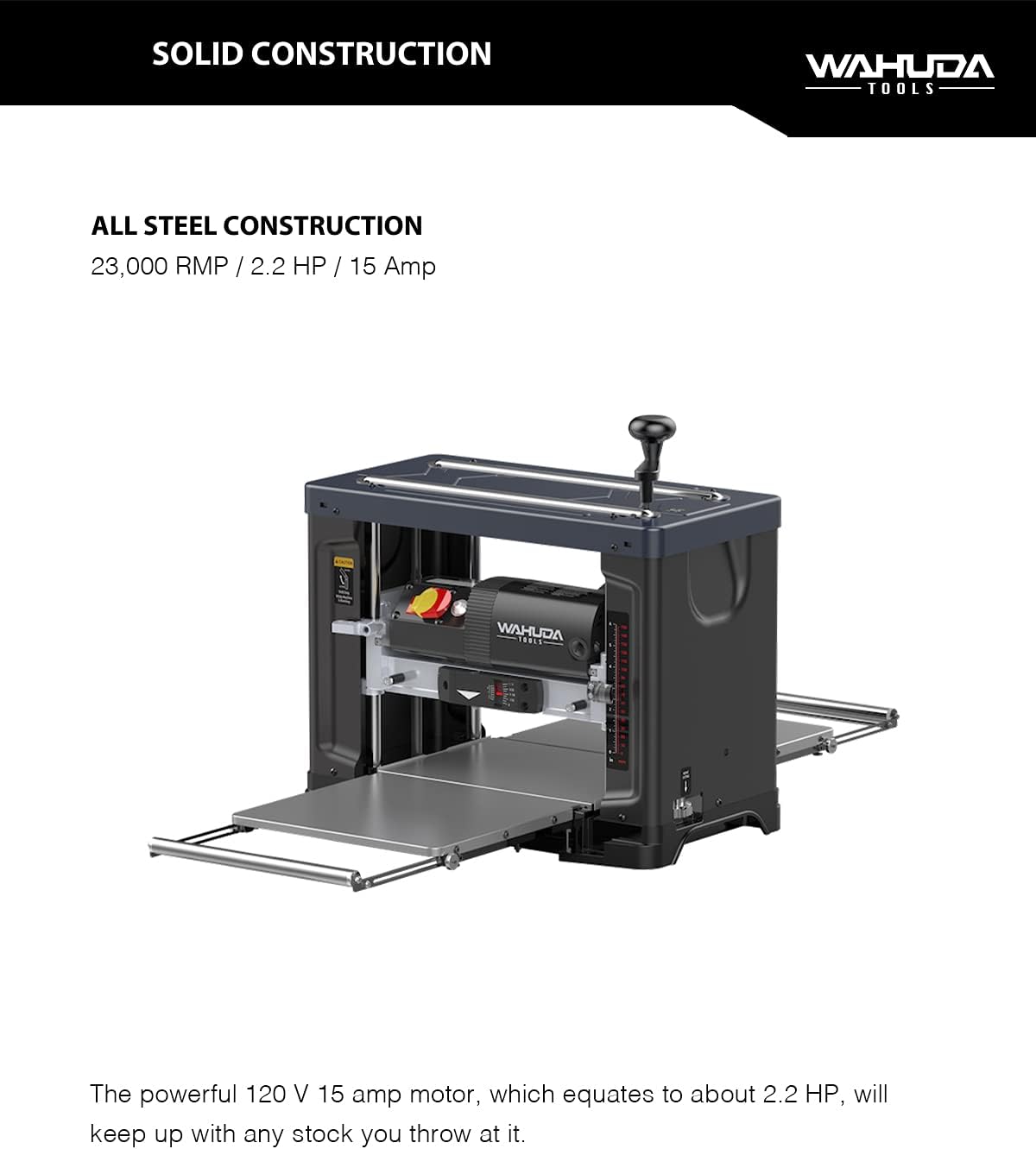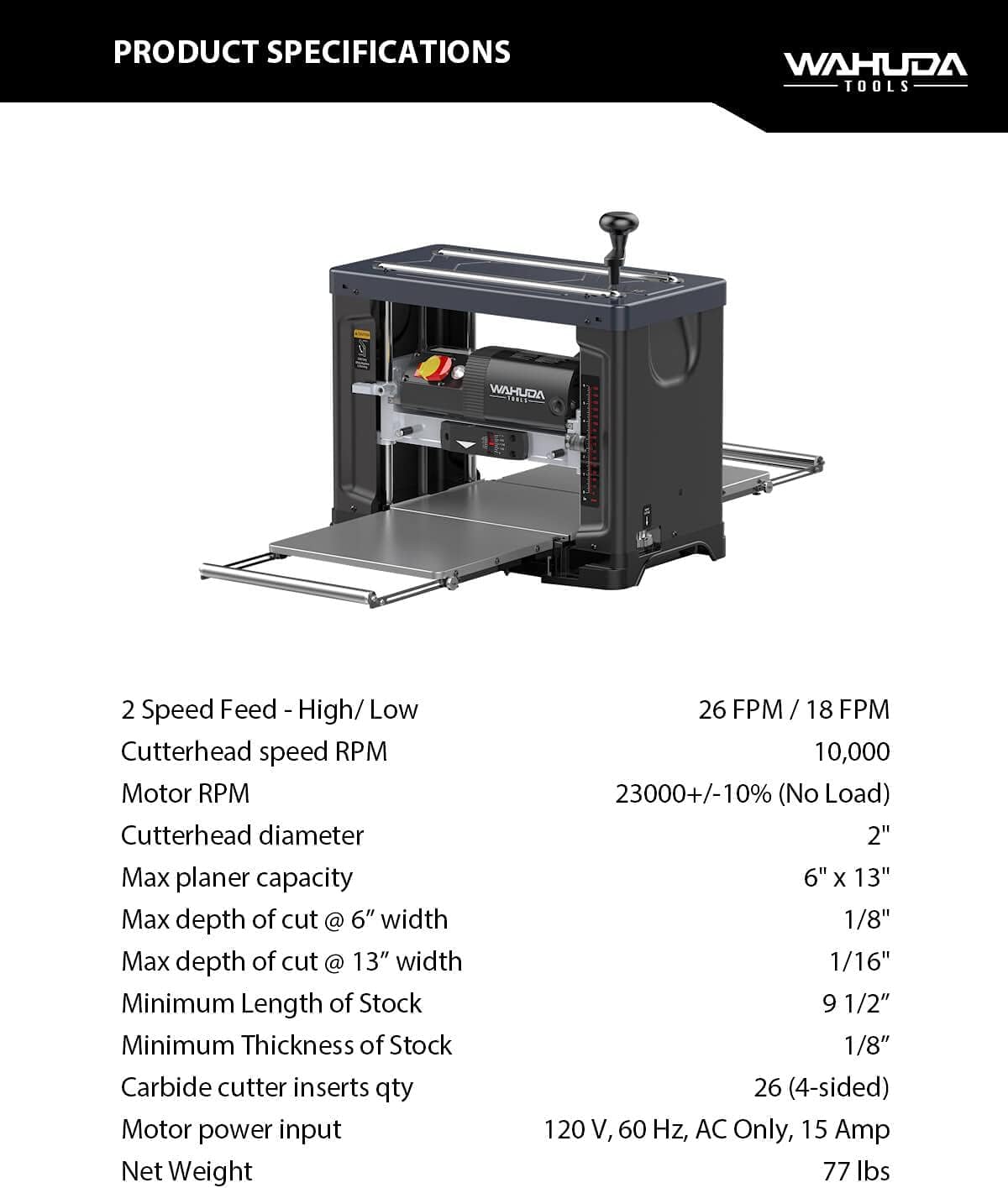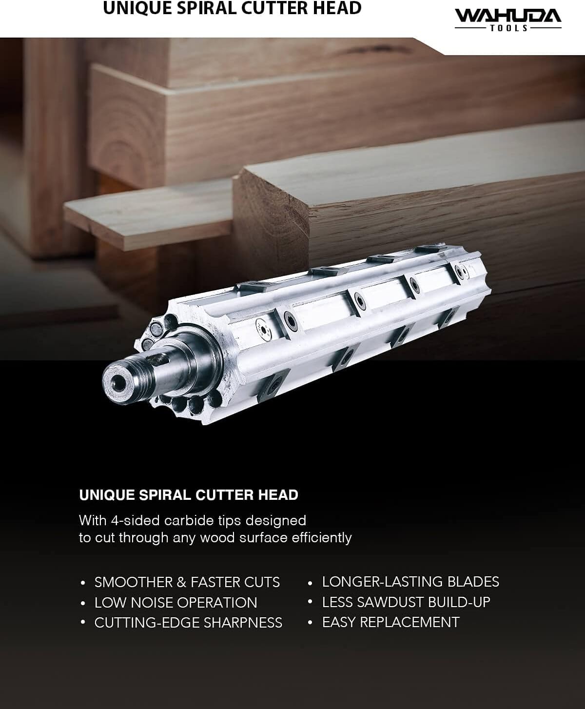 Wahuda Tools Cepilladora de cabeza de corte en espiral de 13" con puntas de carburo de 4 lados (velocidad única - nuevo)