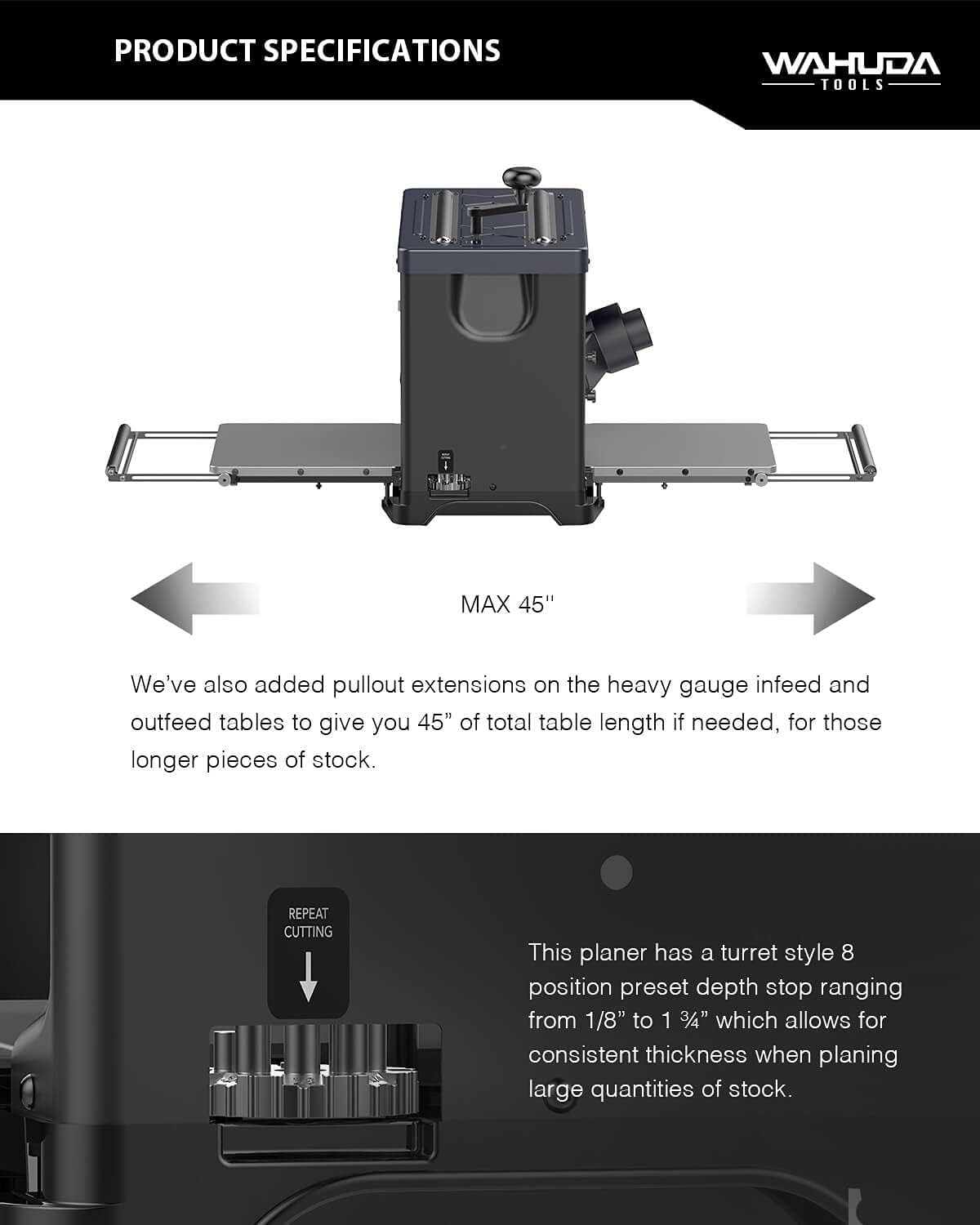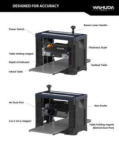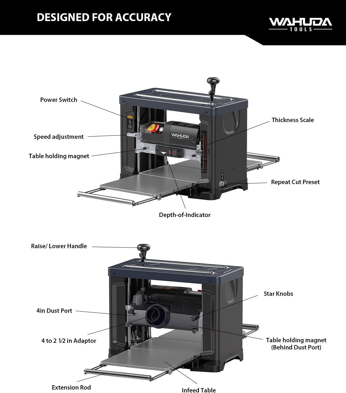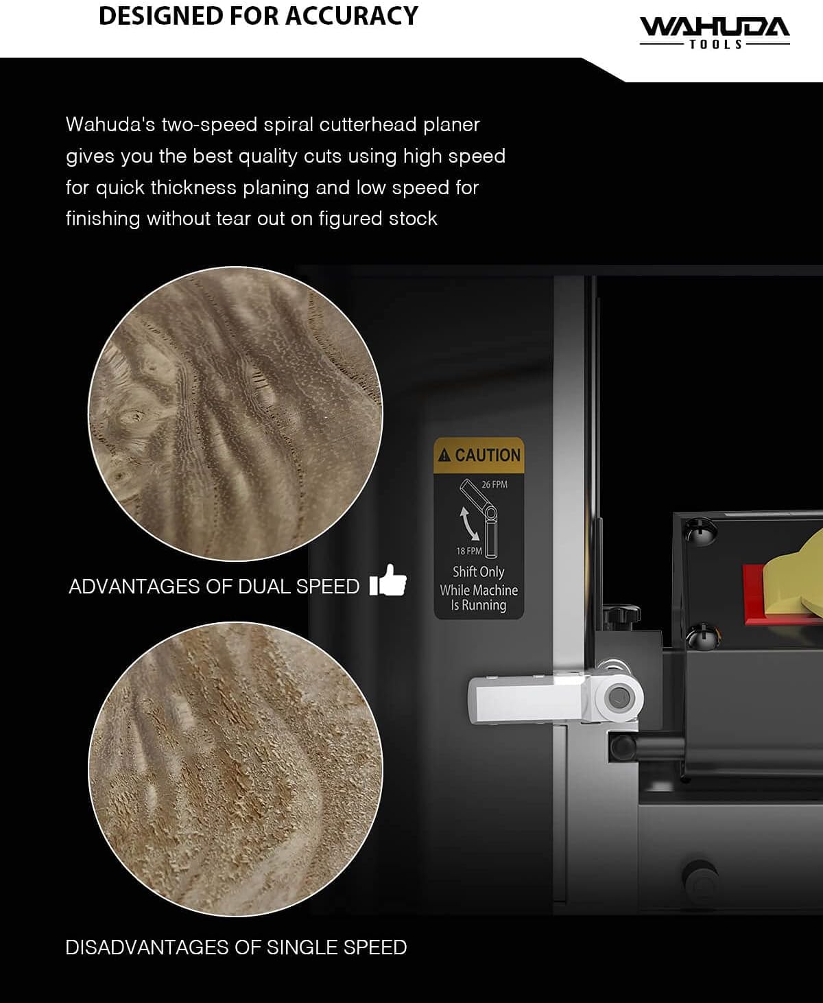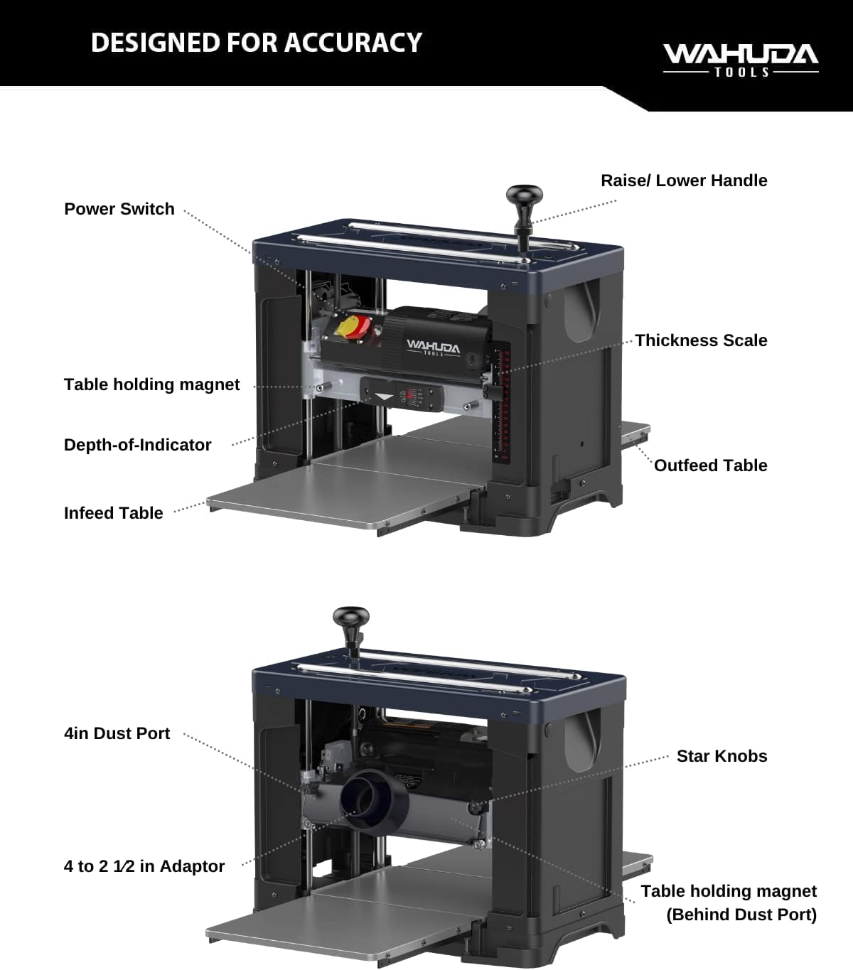 Wahuda Tools Cepilladora de cabeza de corte en espiral de 13" con puntas de carburo de 4 lados (velocidad única - nuevo)